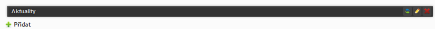 Aktuality vložit na libovolnou stránku. Na stránce se poté objeví modul Aktuality s editačními prvky.